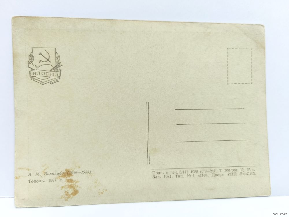 Открытка чистая, 1958г. Васнецов А. М. Тополь. 1887г. 14