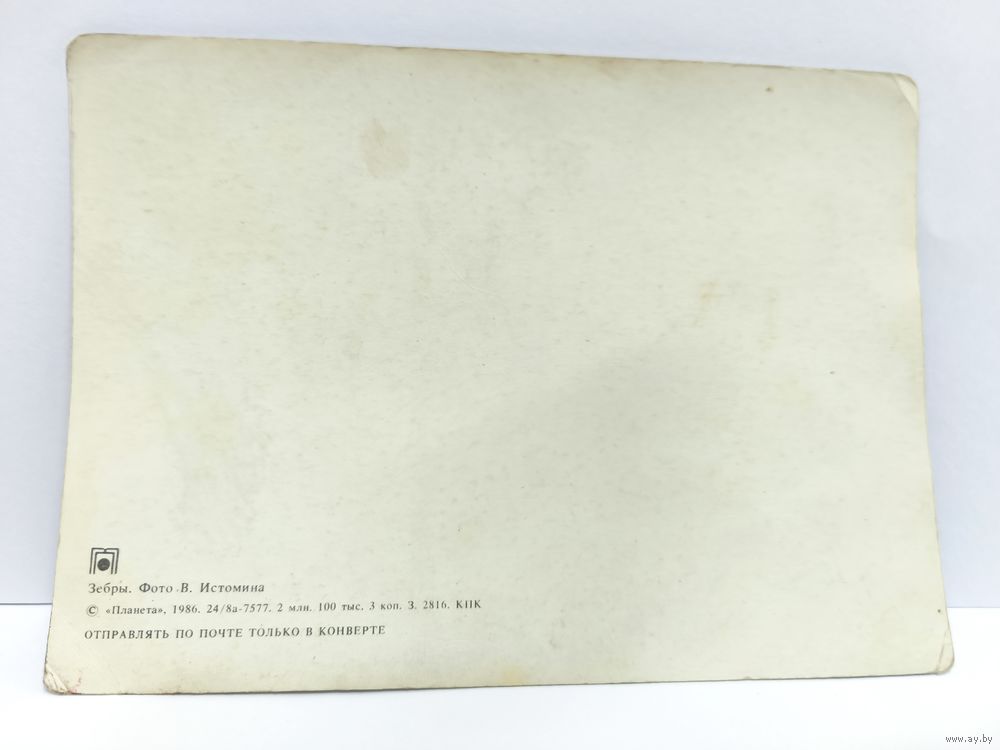 Открытка чистая, 1986г. Зебры. Фото В. Истомина. 14