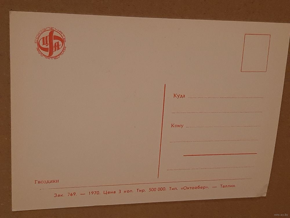 Открытка Цветок Гвоздики Эстония Таллин Тип. Октообер 1970 г. Чистая
