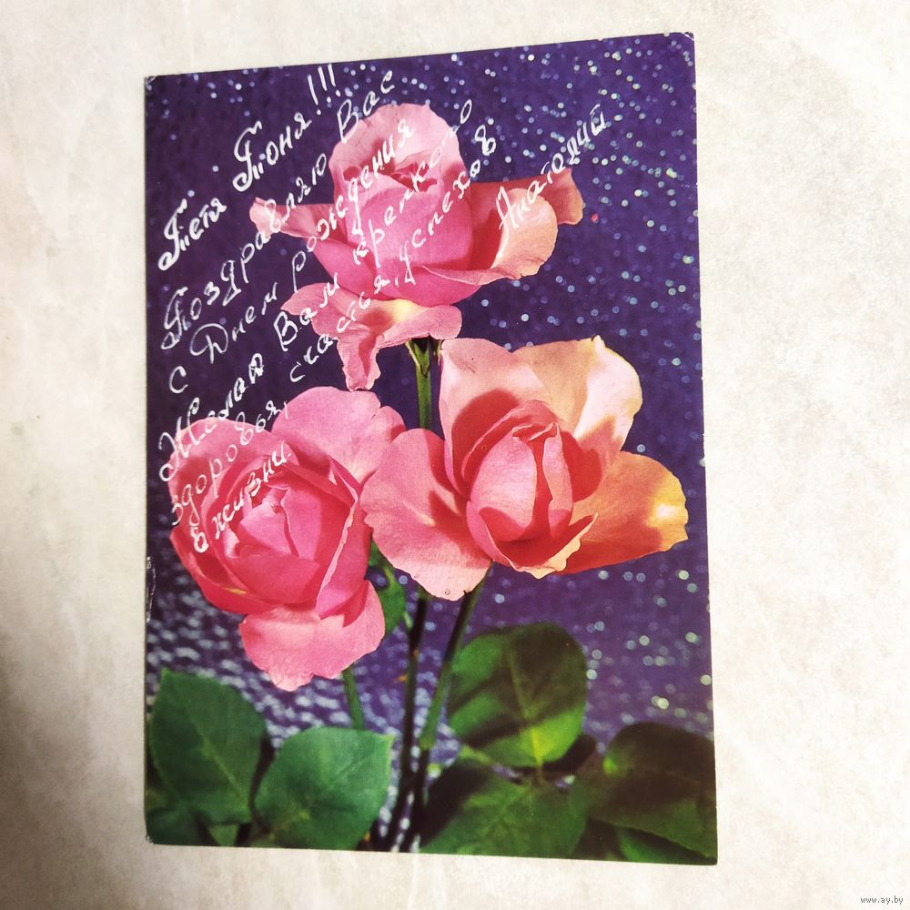 Открытка. Цветы. ГДР. Поздравление Тёти.