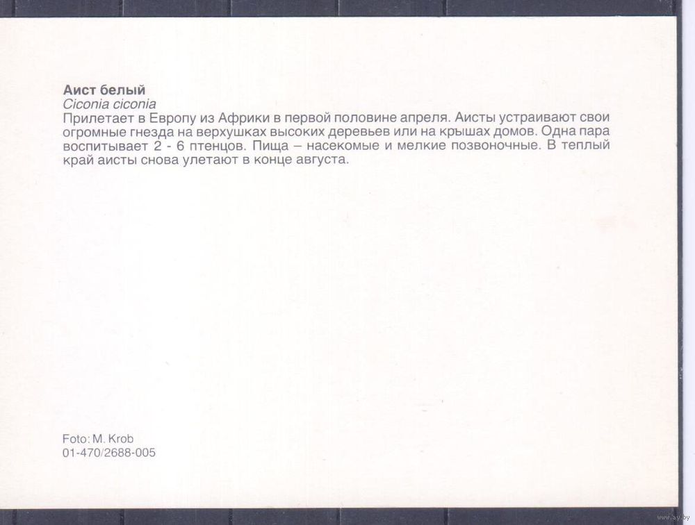 Открытка. Фауна.Птицы.Белый аист.