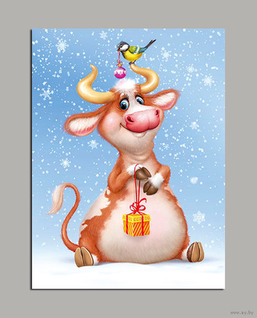 Открытка. Фауна. Животные. Бычок. С новым годом! Подарок. Худож. А.Долотов (чистая)