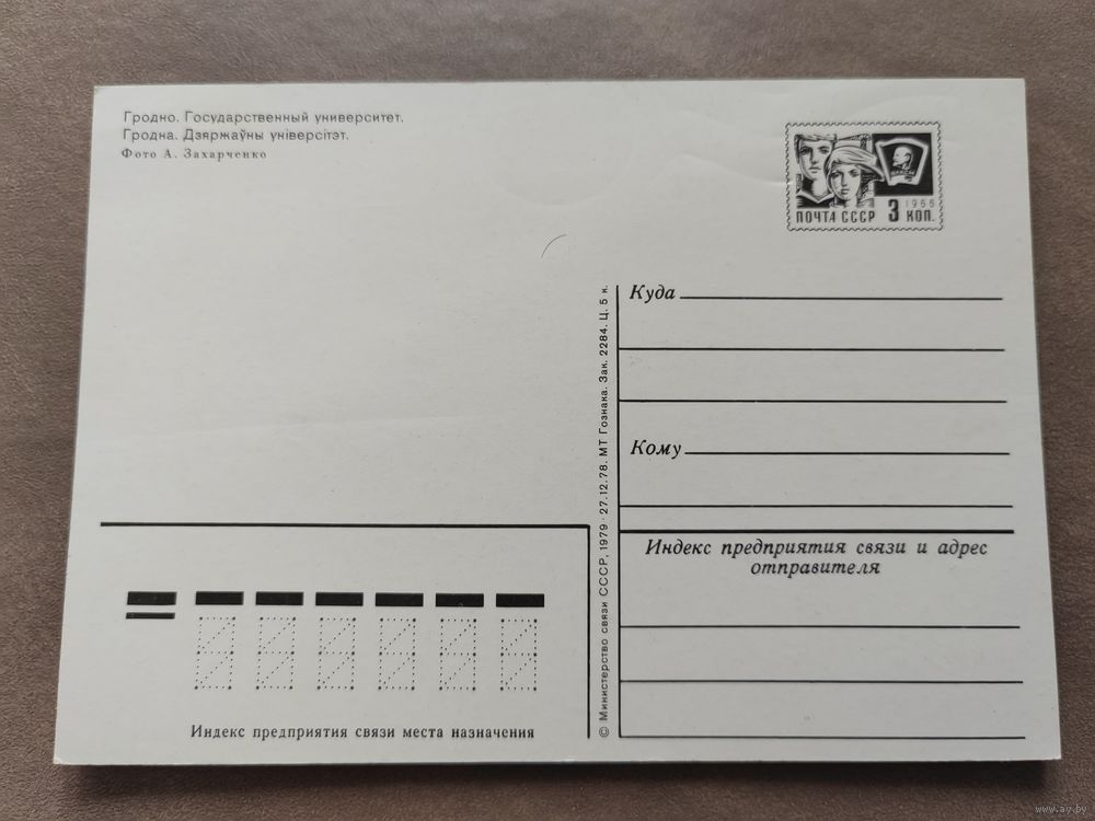 Открытка. Гродно. Государственный университет. 1979 г.