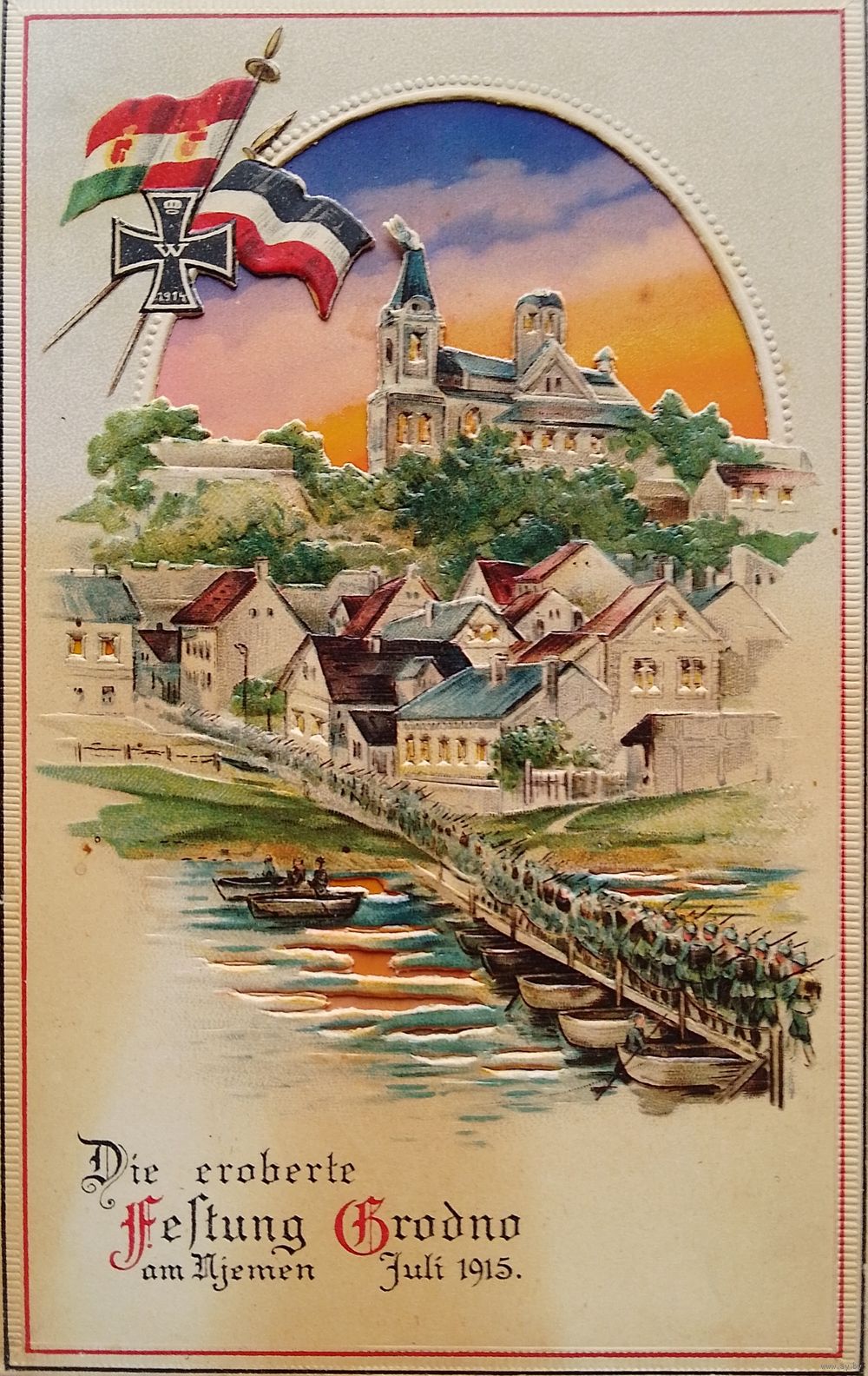 Немецкий выпуск 1915 г. Die eroberte Festung Grodno am Niemen Juli 1915 (Взятие крепости Гродно на реке Неман, июль 1915 г.). Издание D.R.G.M.
