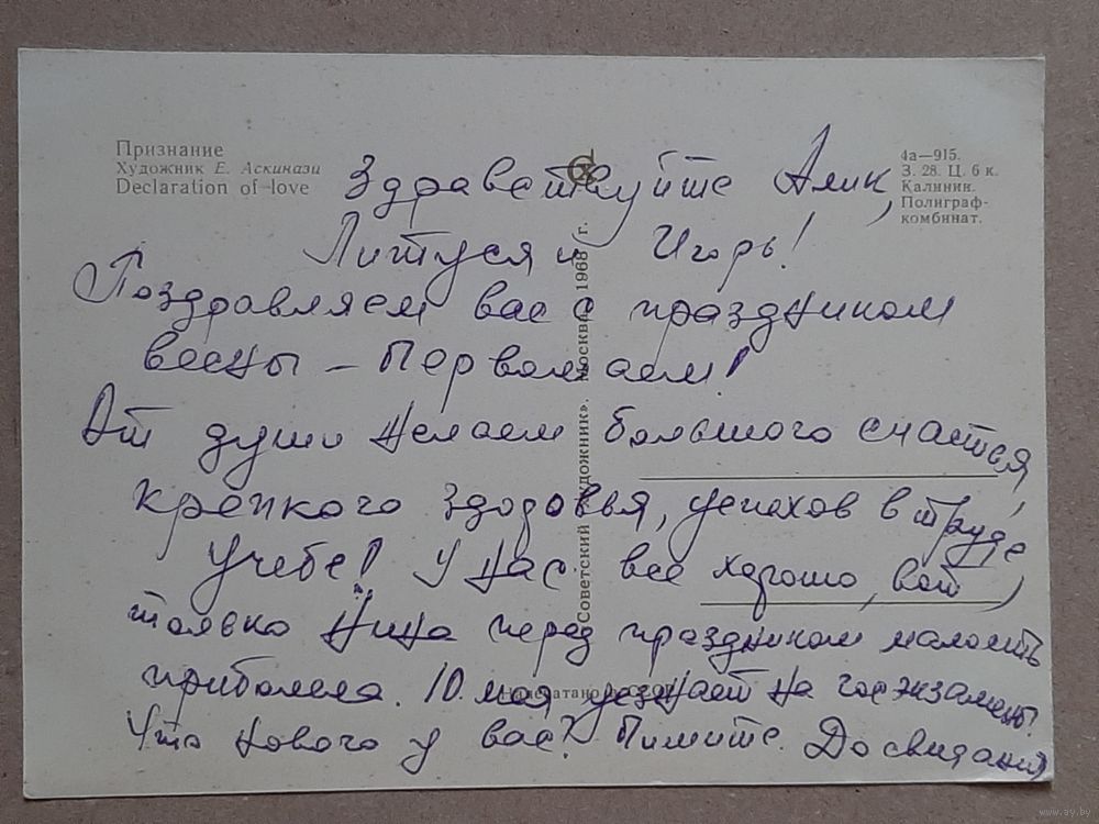 Открытка Худ. Аскинази Изд. 1968 г.