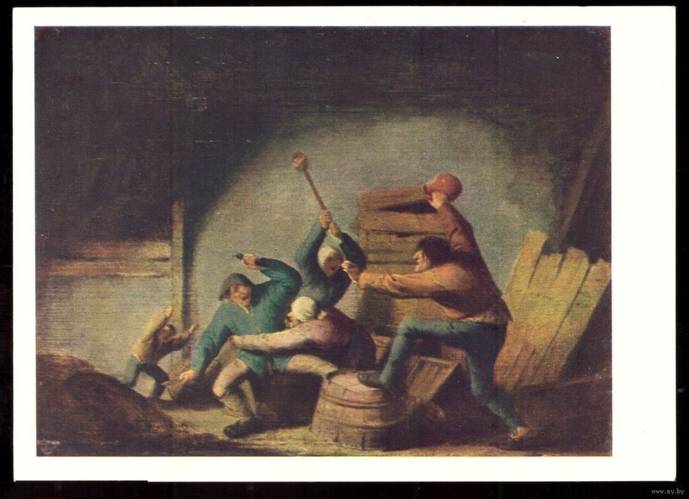 Открытка искусство СССР чистая Голландцы Адриан ван Остаде - Драка РЕДКАЯ из-во ЭРМИТАЖА
