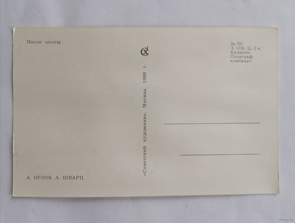 Открытка из СССР, 1968 г, Чистая. После охоты.