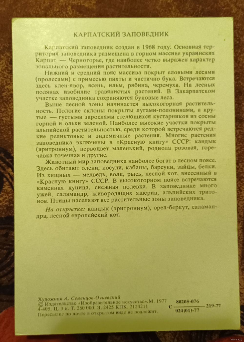 Открытка "Карпатский Заповедник "