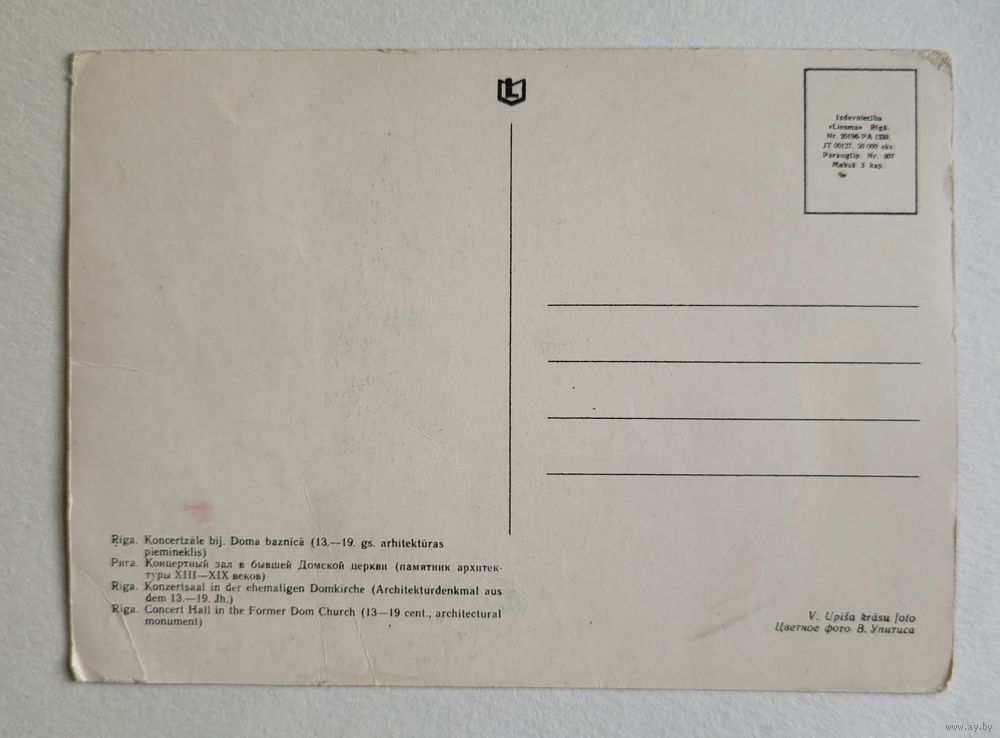 Открытка "Концертный зал Домского собора" из набора "Рига", фото В. Упитиса, 1960 -х гг.