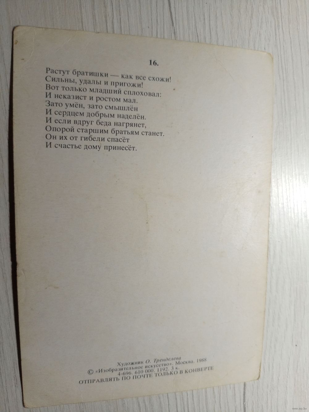 Передача лично г. Минск ул. Бельского д.39 Наложенным платежом не отправляю. Отправка лота европочтой-белпочтой Покупатель выходит на связь в течении 3 дней по электронной почте с указанием НАЗВАНИЯ ЛОТА.