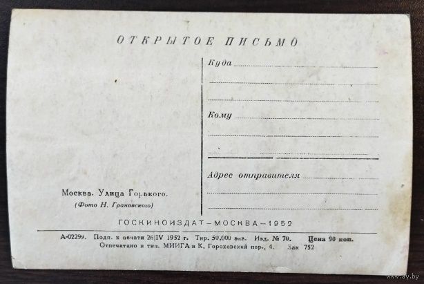 Открытка Москва, ул.Горького, 1952 г., чистая