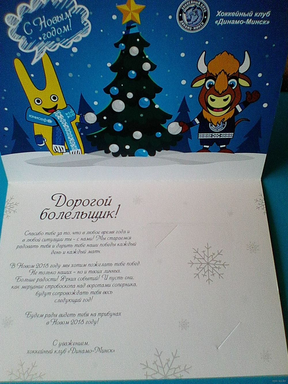 Открытка Новогодняя - Хоккейный Клуб "Динамо" Минск.