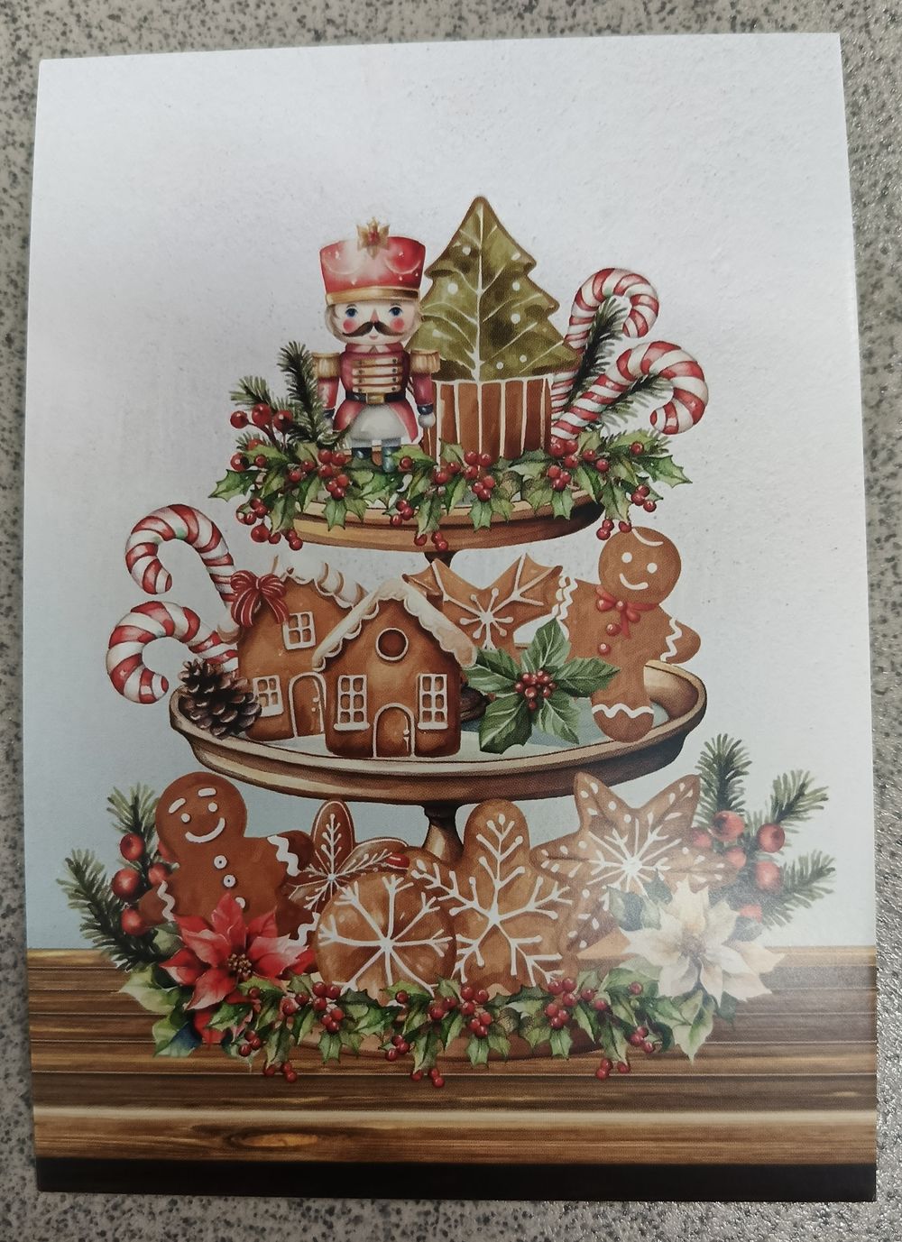 Открытка новый год, пряники, остролист. Чистая