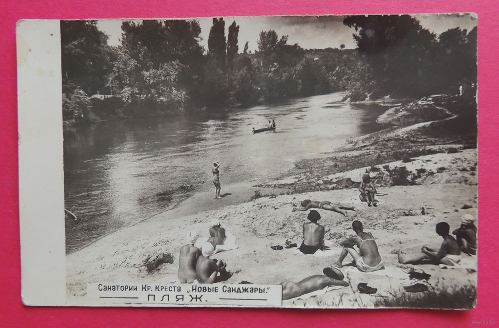 Открытка "Нудиский пляж, санаторий "Новые Санджары", Красный крест, 1920-1930-е гг.