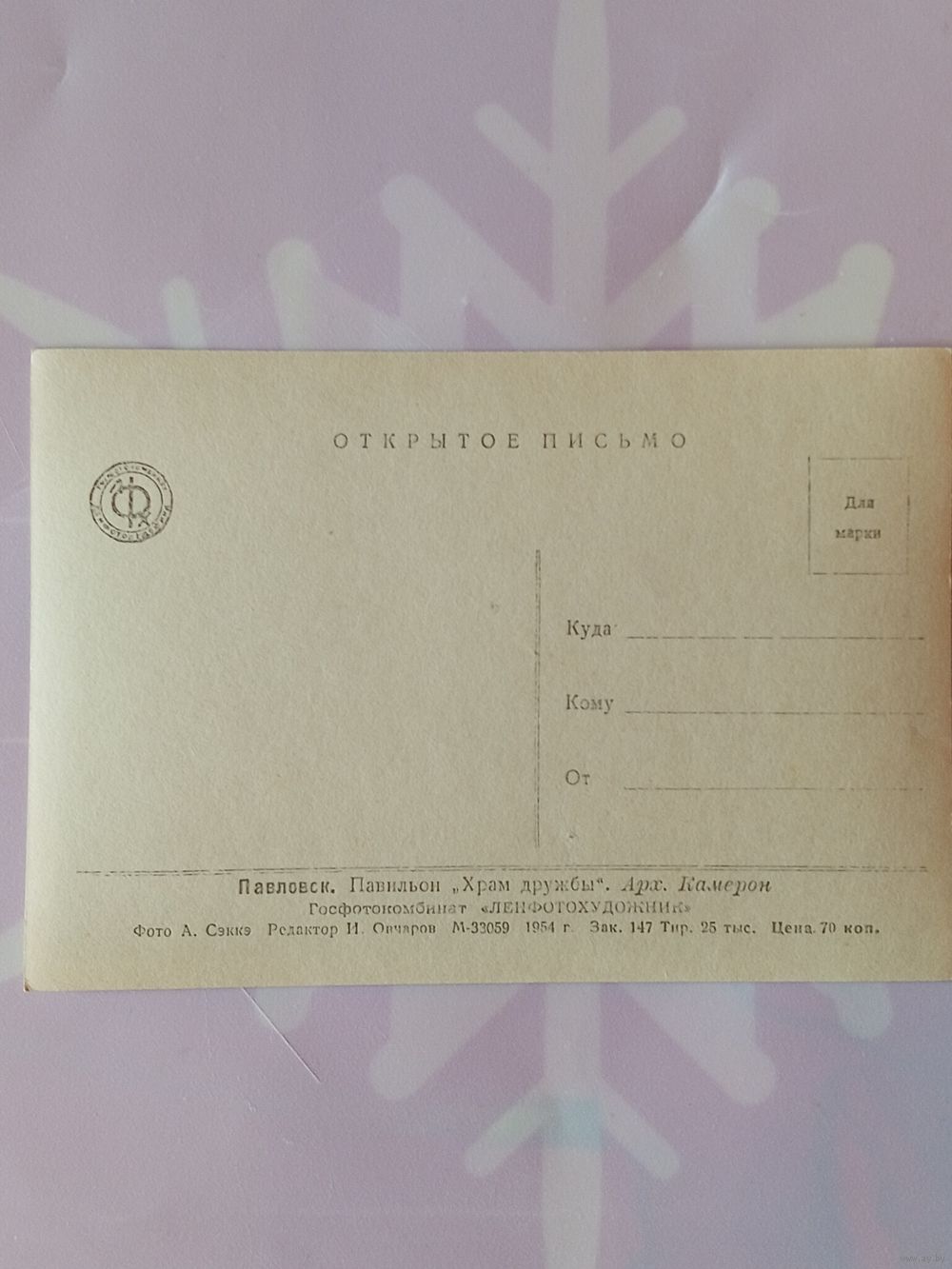 Чистая открытка 1954 г.в