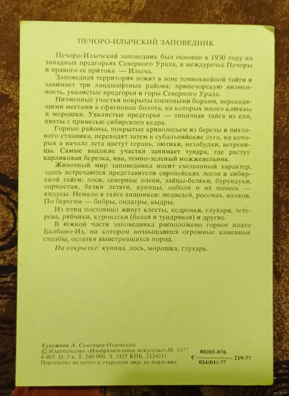 Открытка "ПЕЧОРО-Илычский заповедник"