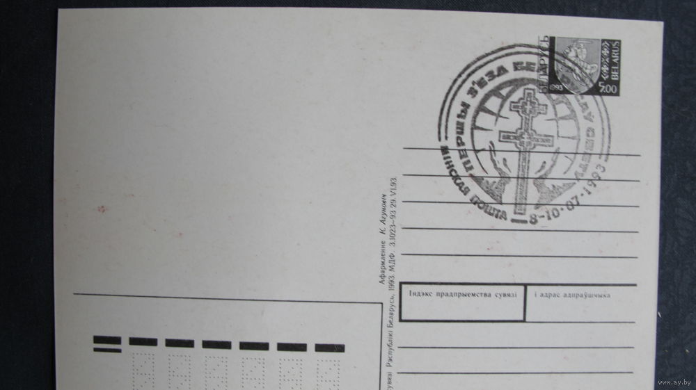 Открытка "Першы з'езд беларусаў свету" с гашением первого дня + соответствующая марка