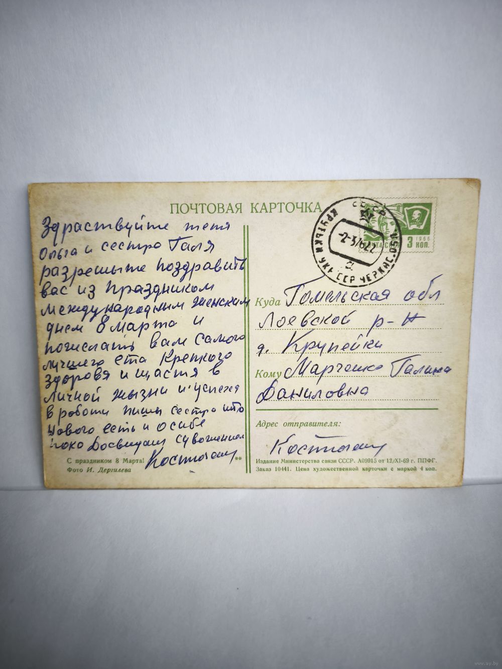 Открытка. Почтовая карточка, 1969г. С праздником 8 марта. Фото И. Дергилева. 14