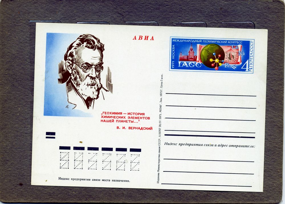 Открытка, почтовая карточка, 1971, Заг.2, Междунар. геохим конгресс