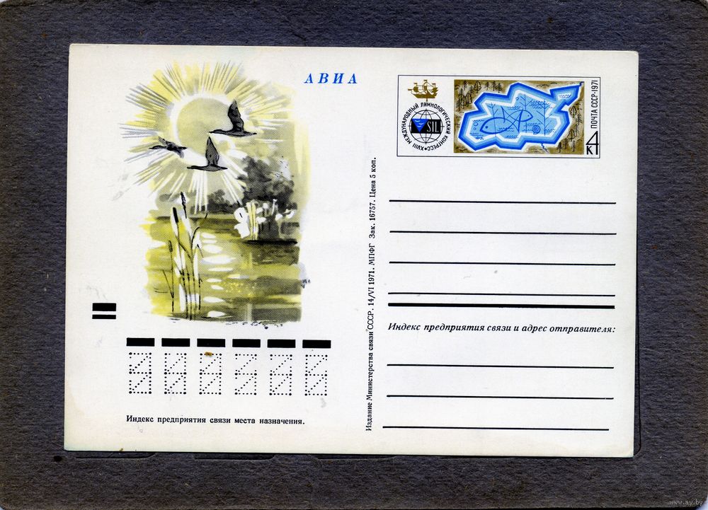 Открытка, почтовая карточка, 1971, Заг.3, Междунар. лимнологич. конгресс
