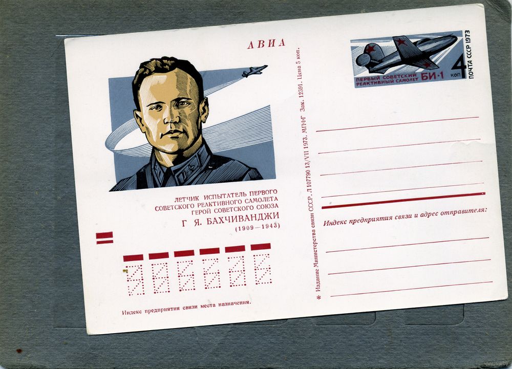 Открытка, почтовая карточка, 1973, Заг.13, ЛЕТЧИК-испытатель Бахчиванджи, чистая