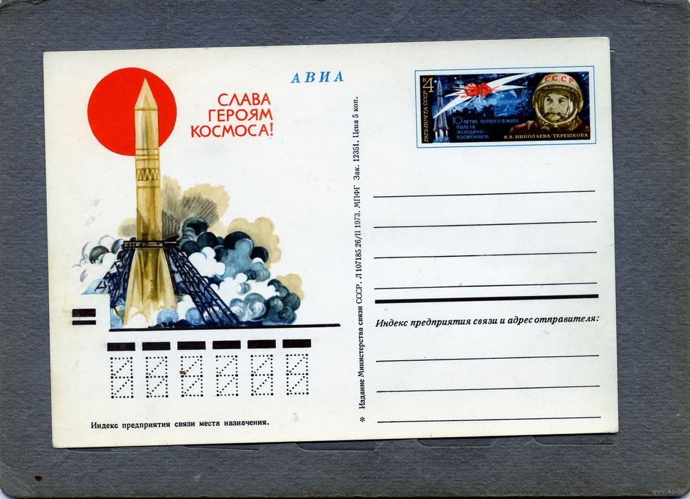 Открытка, почтовая карточка, 1973, Заг.9, 10-летие полета ТЕРЕШКОВОЙ, Чистая
