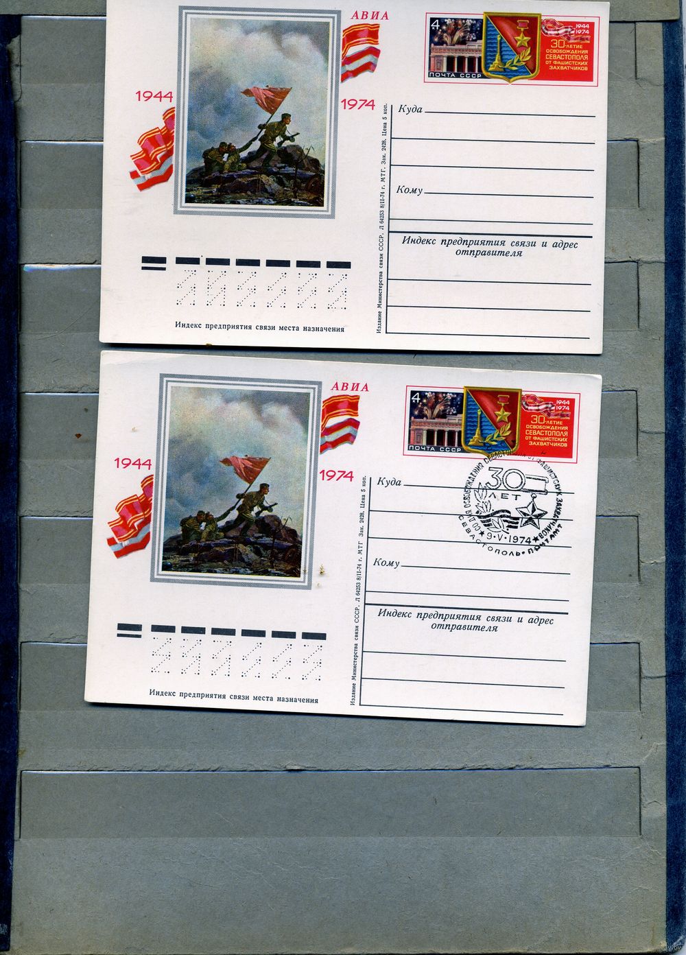 Открытка, почтовая карточка, 1974, Заг.14, 30-летие освобождения Севастополя, 2 шт., чистая и СГ