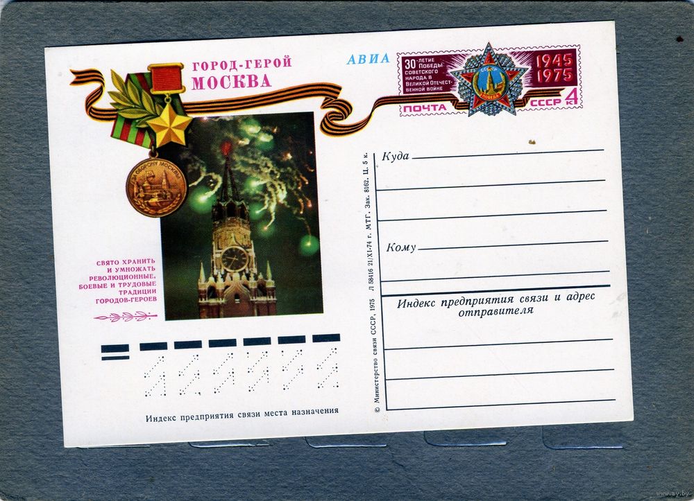 Открытка, почтовая карточка, 1975, Заг.20, ГОРОД ГЕРОЙ МОСКВА, чистая