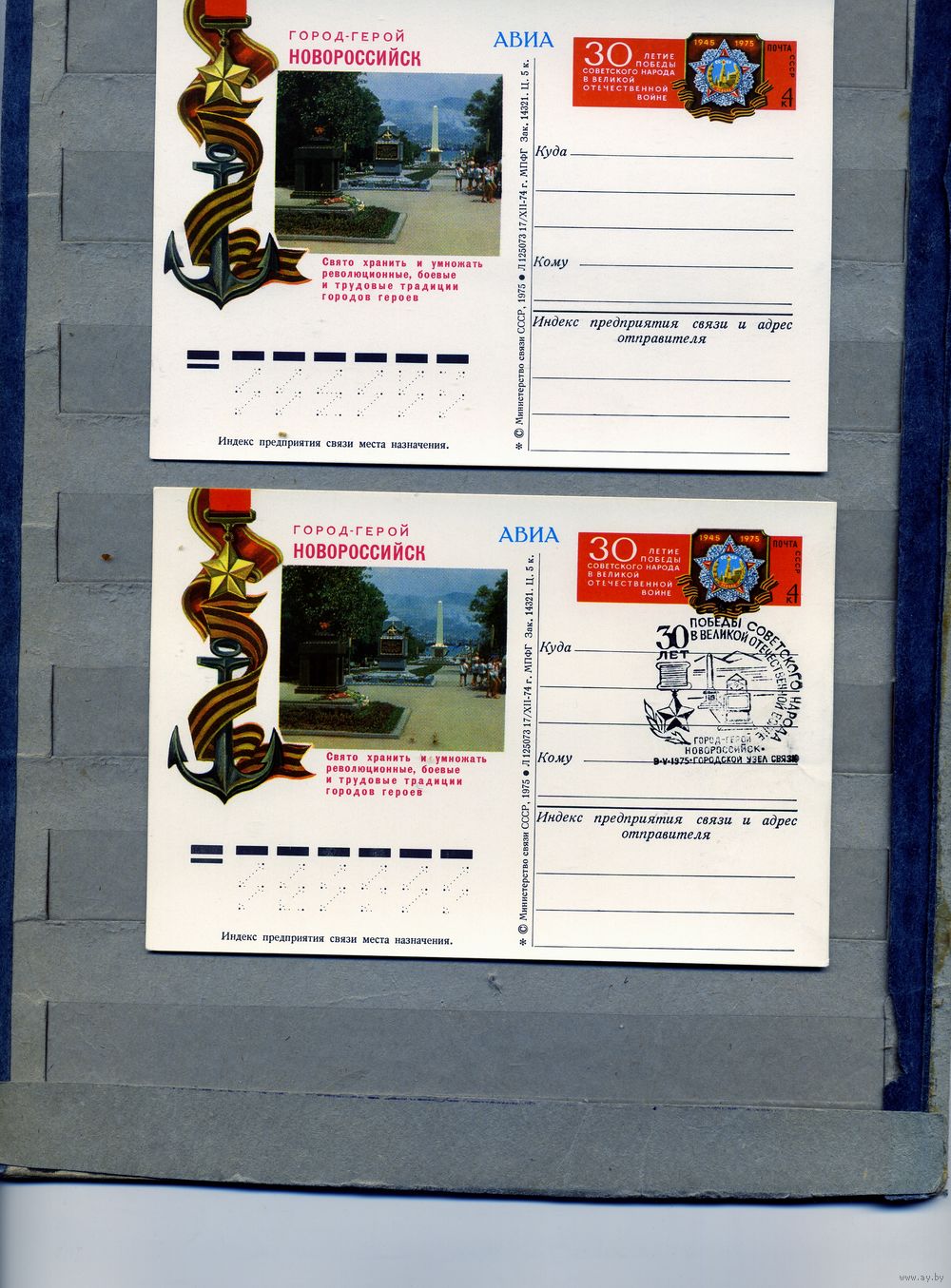 Открытка, почтовая карточка, 1975, Заг.27, ГОРОД ГЕРОЙ НОВОРОССИЙСК, 2шт чиставя и СГ