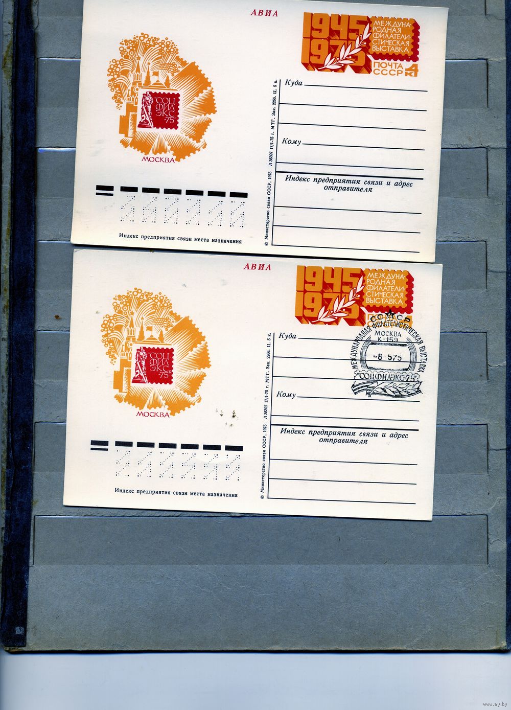 Открытка, почтовая карточка, 1975, Заг.30, СОЦФИЛЭКС-75 , чистая и СГ М-ва , К-159