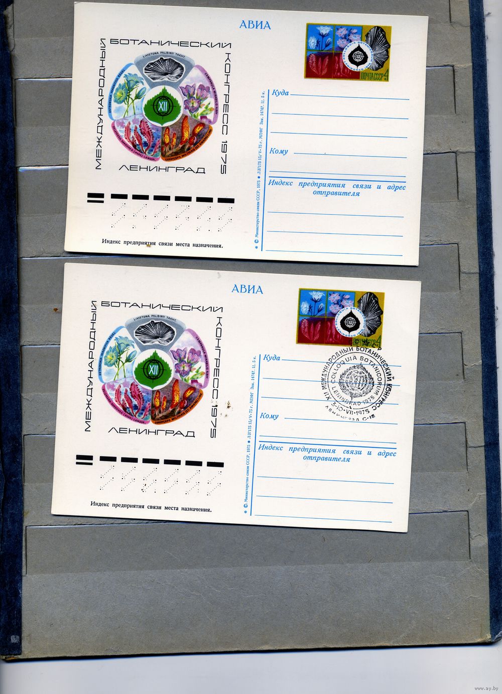 Открытка, почтовая карточка, 1975, Заг.32, БОТАНИЧЕСКИЙ КОНГРЕСС, 2 шт., чистая и СГ