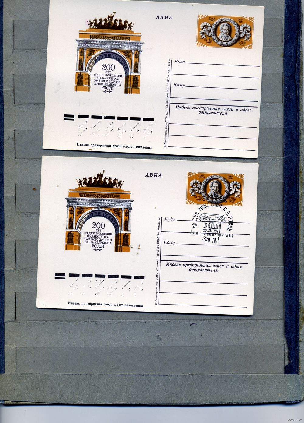 Открытка, почтовая карточка, 1975, Заг.33, 200 лет со д/р РОССИ 2шт чистая и СГ,