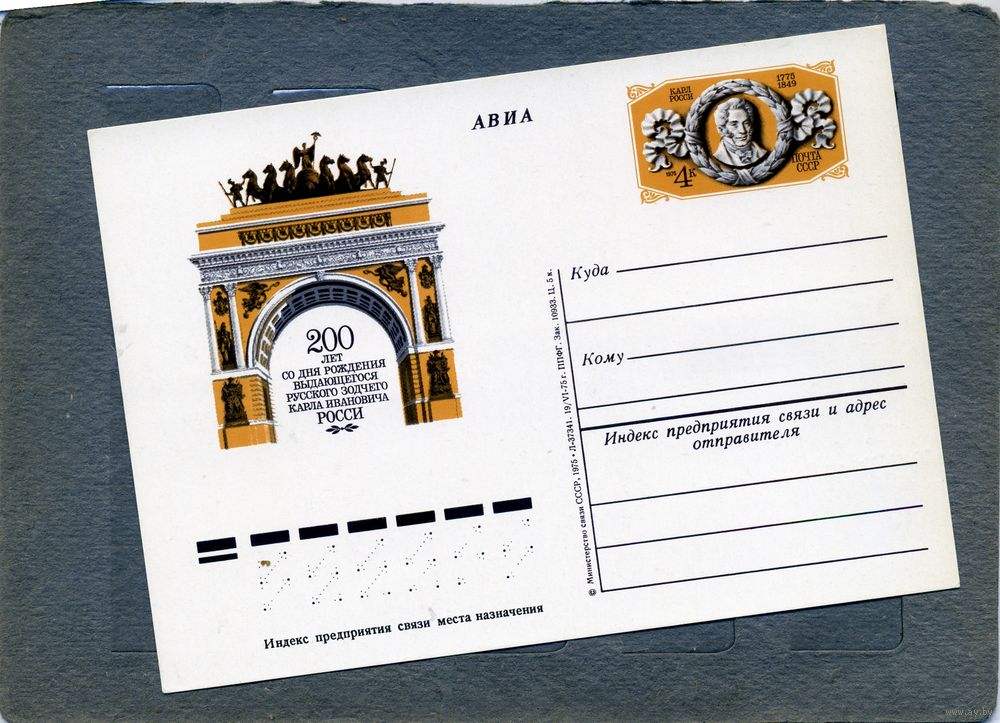 Открытка, почтовая карточка, 1975, Заг.33, 200 лет со д/р РОССИ, чистая