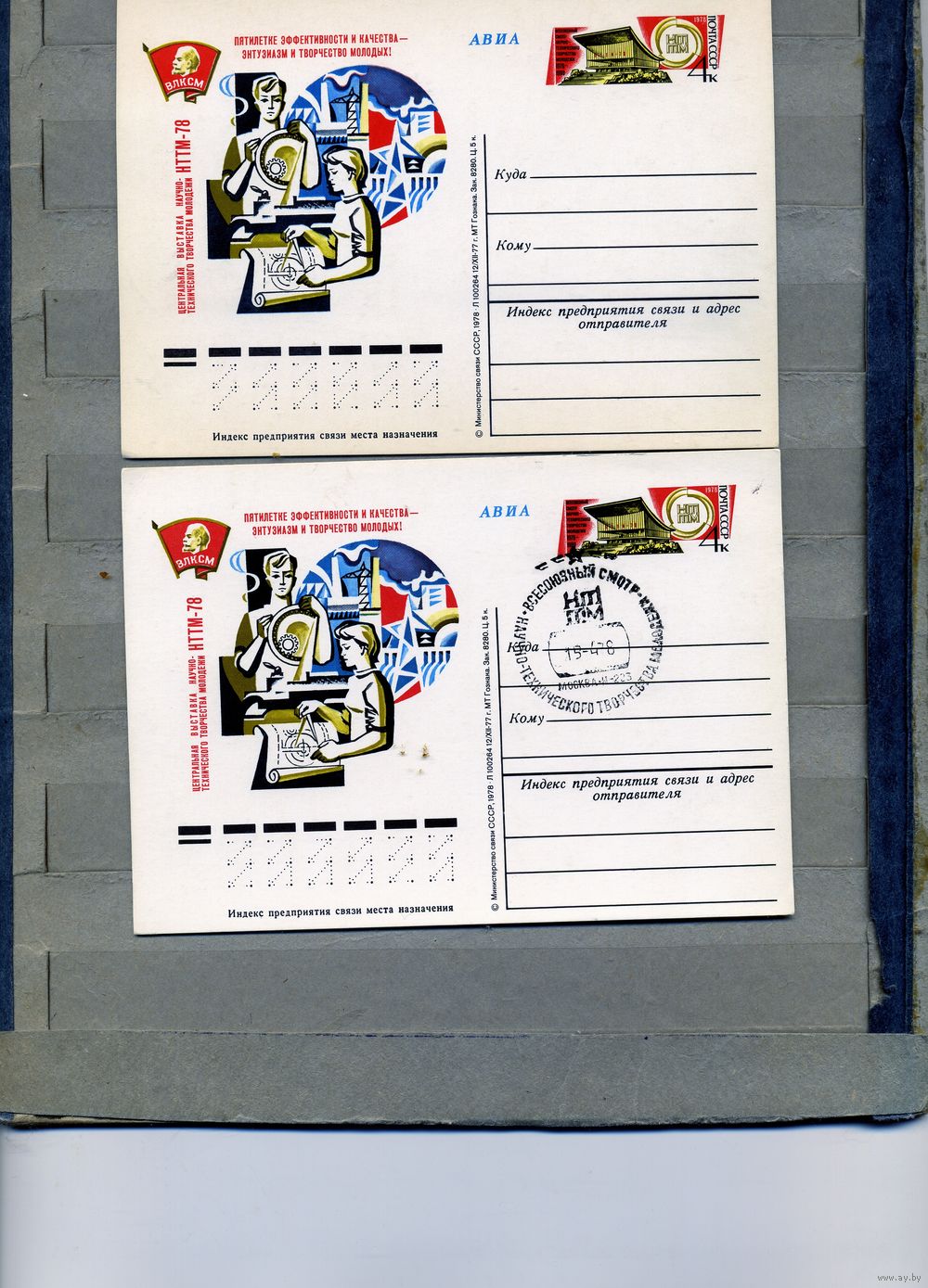 Открытка, почтовая карточка, 1978, Заг.57, ВЫСТАВКА ТВОРЧЕСТВА МОЛОДЕЖИ 2шт, чистая и СГ