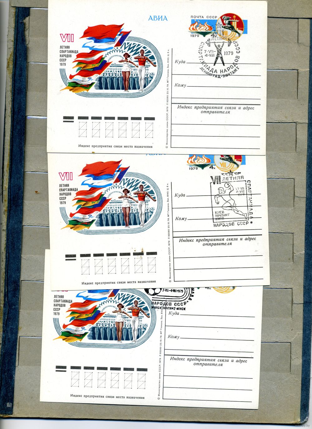 Открытка, почтовая карточка, 1979, Заг.73, СПАРТАКИАДА СССР 3 шт чистая 2 СГ
