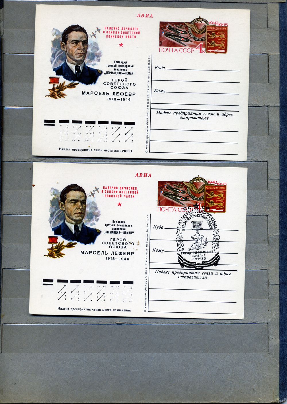 Открытка, почтовая карточка, 1980, Заг.78, МАРСЕЛЬ ЛЕФЕВР, 2шт чистая и СГ м-ва 35 лет победы