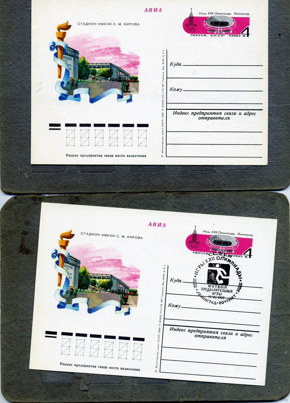 Открытка, почтовая карточка, 1980, Заг.79 2 открытки (чистая и СГ (Ленинград п-т)) ОЛИМПИЙСКИЕ СООРУЖЕНИЯ ЛЕНИНГРАД
