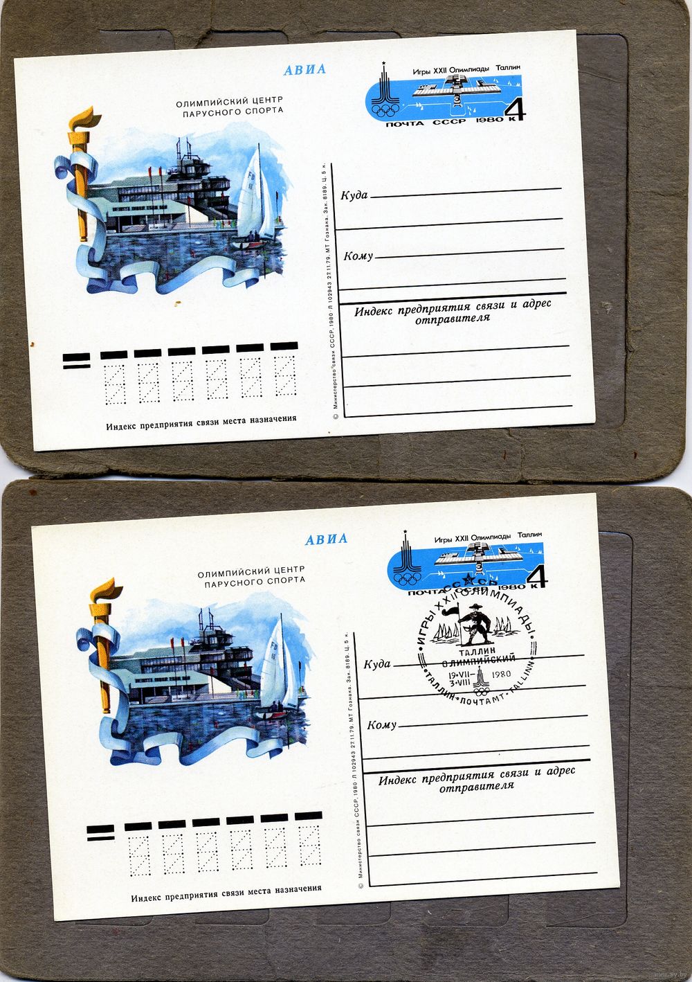 Открытка, почтовая карточка, 1980, Заг.80, 2 открытки (чистая и СГ (Таллин п-т)) ОЛИМПИЙСКИЕ СООРУЖЕНИЯ, ТАЛЛИН