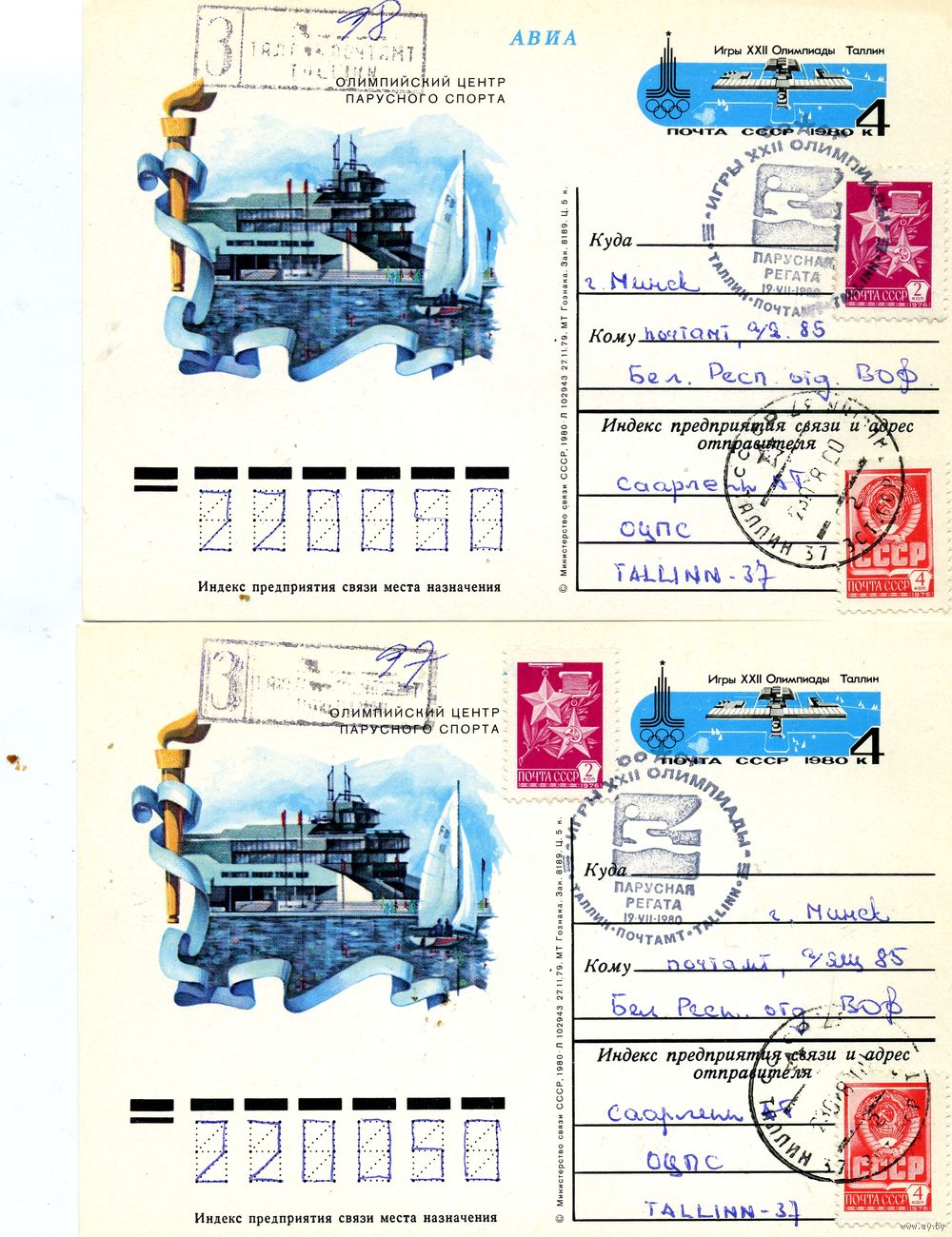 Открытка, почтовая карточка, 1980, Заг.80, 2 открытки ОДНИМ ЛОТОМ, СГ и ТАЛЛИН с почт. гашением