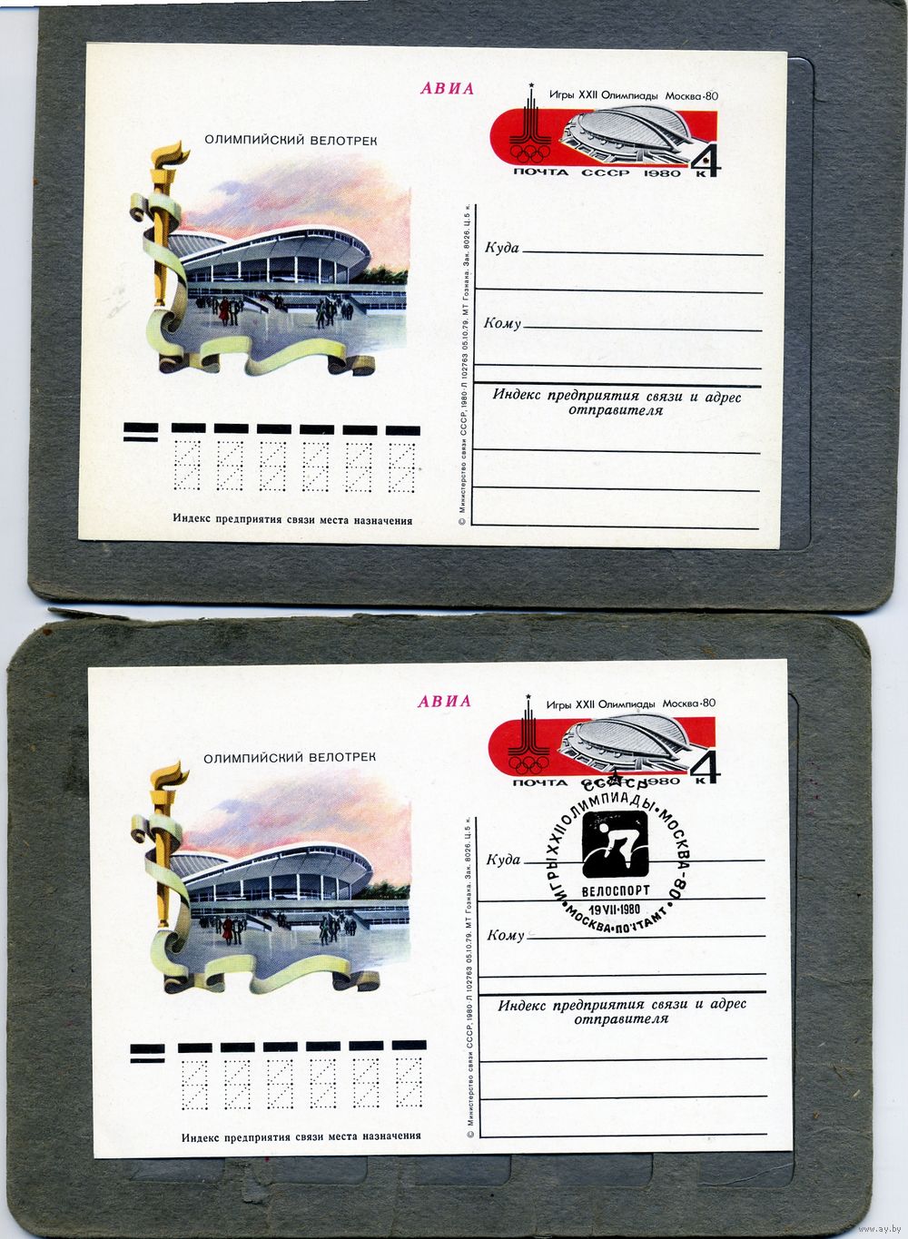 Открытка, почтовая карточка, 1980, Заг.84, 2 открытки (чистая и СГ " велоспорт",Москва п-т)) ОЛИМПИЙСКИЕ СООРУЖЕНИЯ, МОСКВА, велотрек