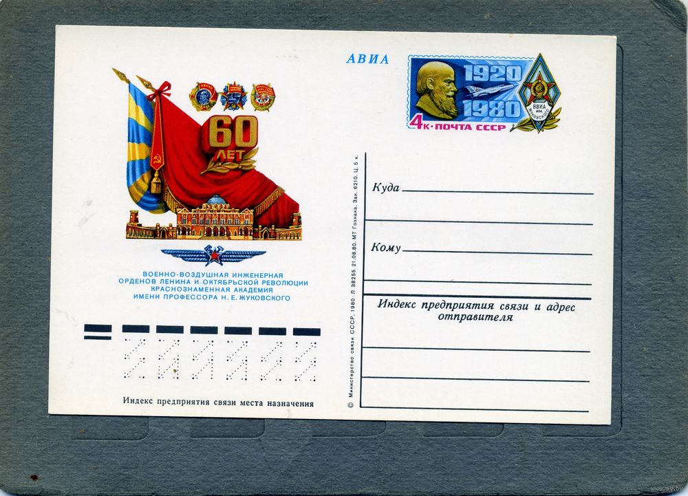 Открытка, почтовая карточка, 1980, Заг.90, 60 лет академии им. Жуковского, чистая
