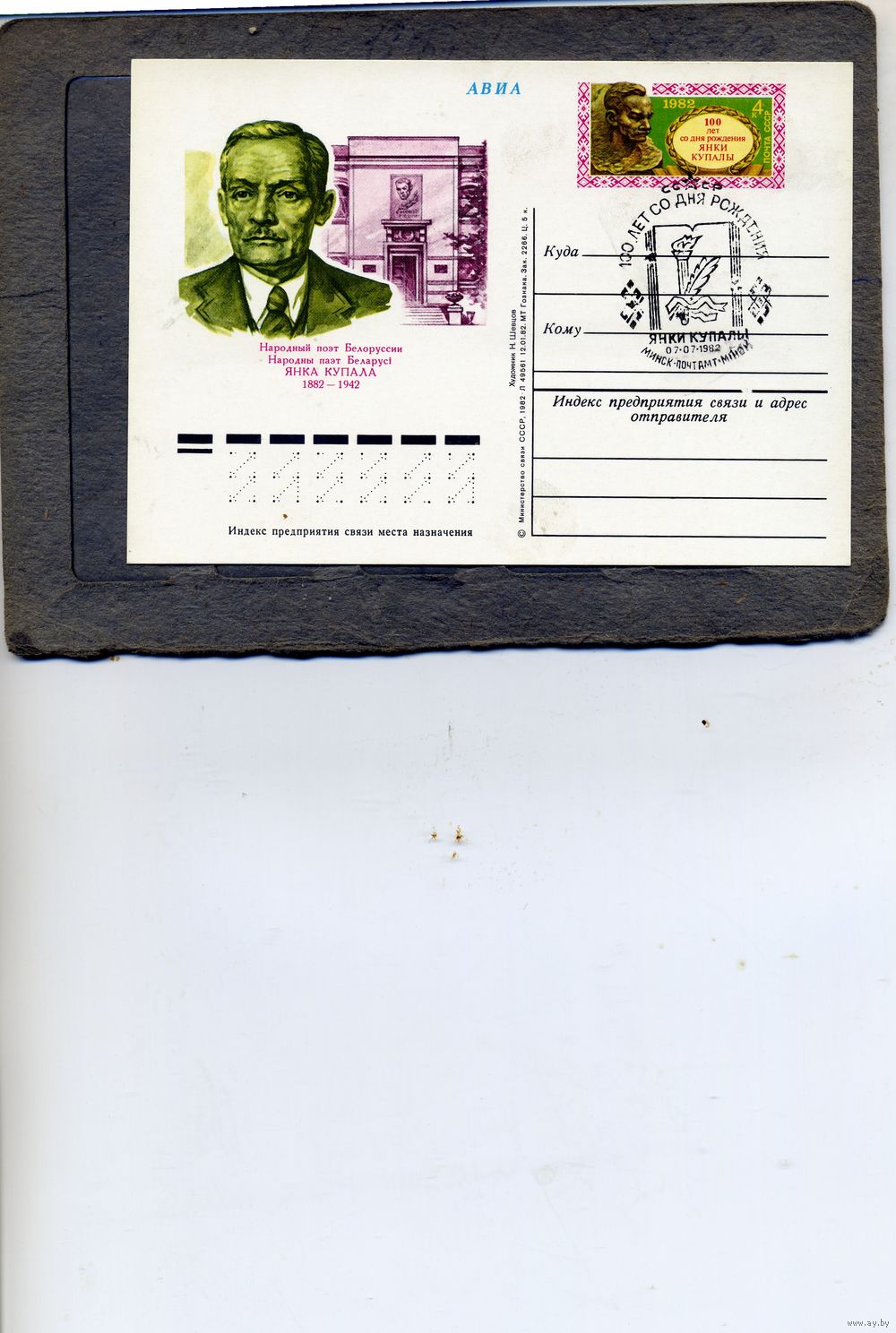 Открытка, почтовая карточка, 1982, Заг. 104, СГ " (Минск п-т)) 100 лет мо д/р Я. КУПАЛЫ