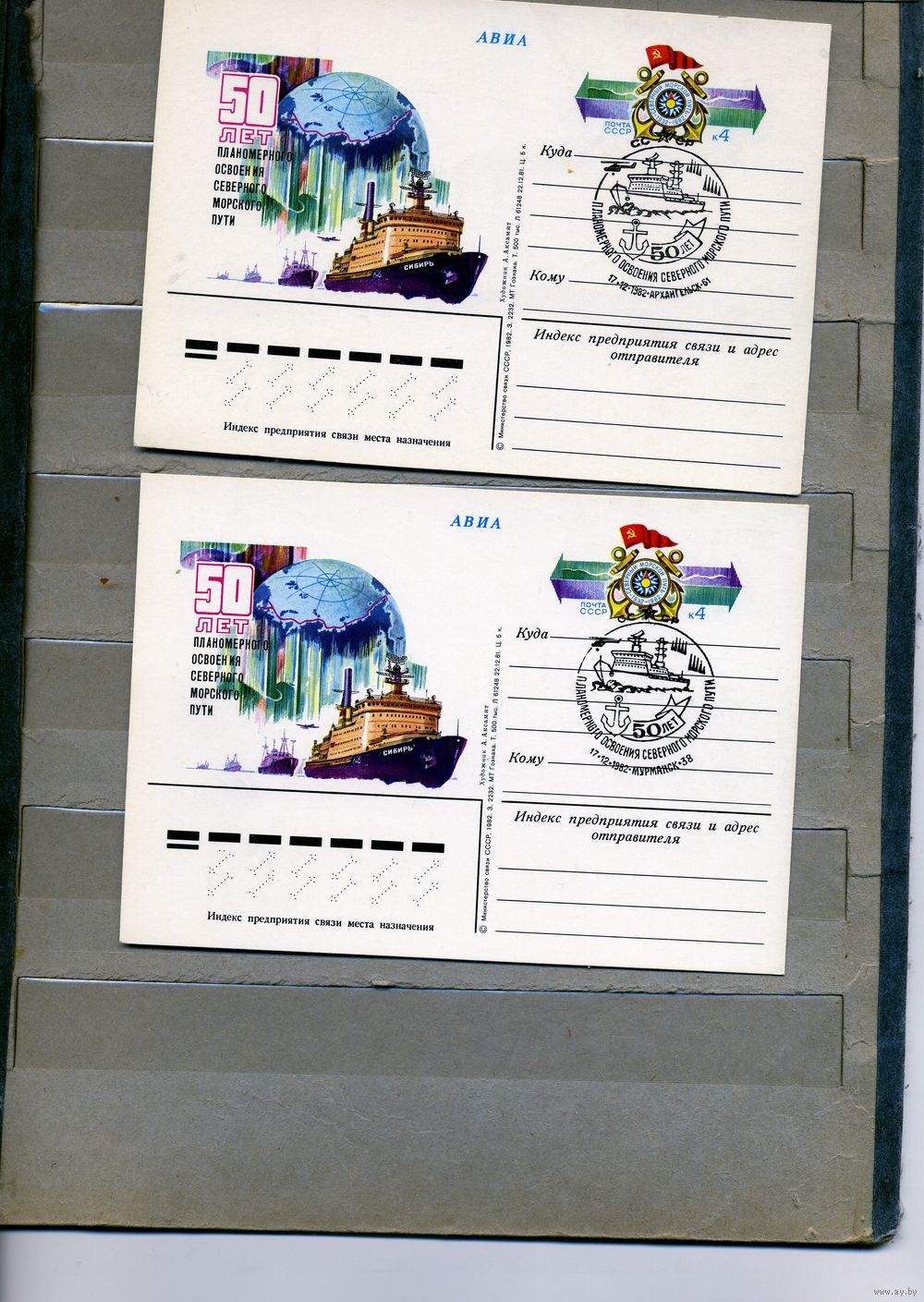 Открытка, почтовая карточка, 1982, Заг. 108, 50-летие СЕВЕР. МОРСК. ПУТИ СГ АРХАНГЕЛЬК, МУРМАНСК по 1,30р