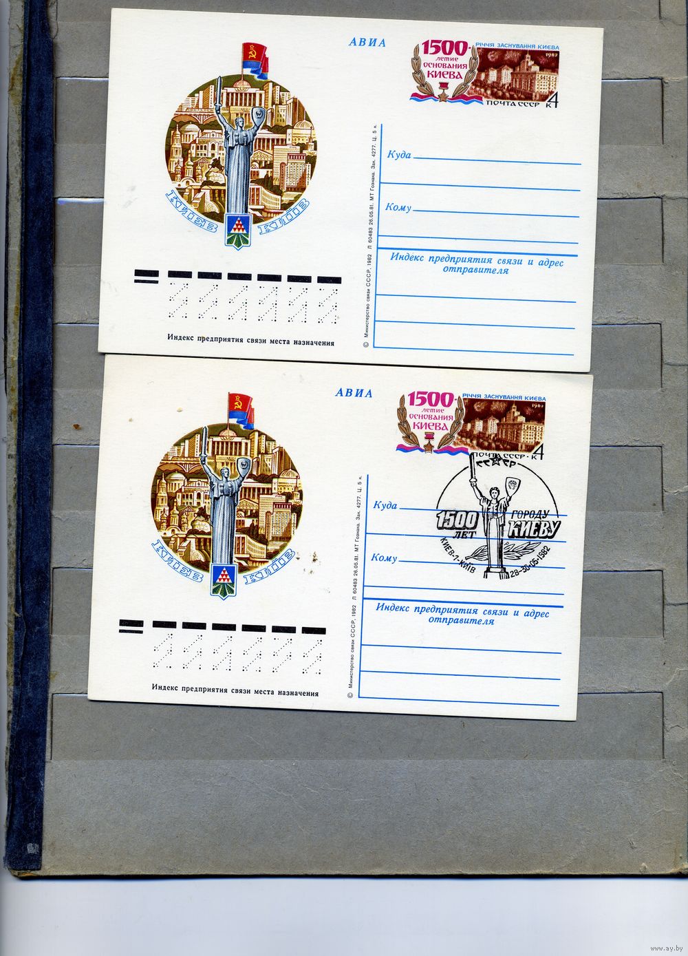 Открытка, почтовая карточка, 1982, Заг. 99, 1500 лет КИЕВУ , 2 шт чистая и СГ Киев п-т