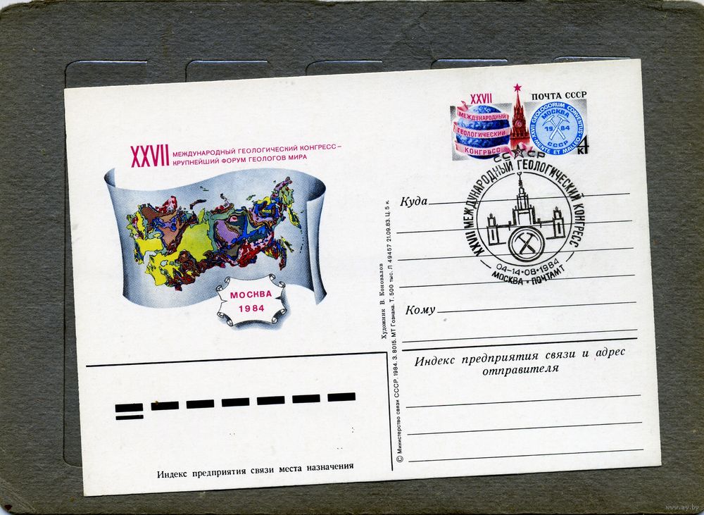 Открытка, почтовая карточка, 1984, Заг. 136, ГЕОЛОГИЧЕСКИЙ КОНГРЕСС СГ, М-ва п-т