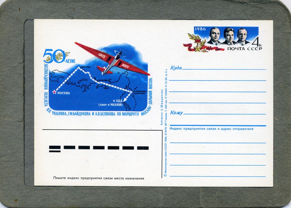 Открытка, Почтовая карточка, 1986, Заг. 158, ПЕРЕЛЕТ МОСКВА-Д.ВОСТОК