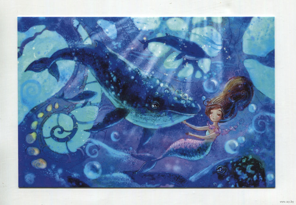 Открытка почтовая. Кит и русалочка. Океан. Вода. Ночь.Подводный мир. Худож. А.Столбова (чистая)