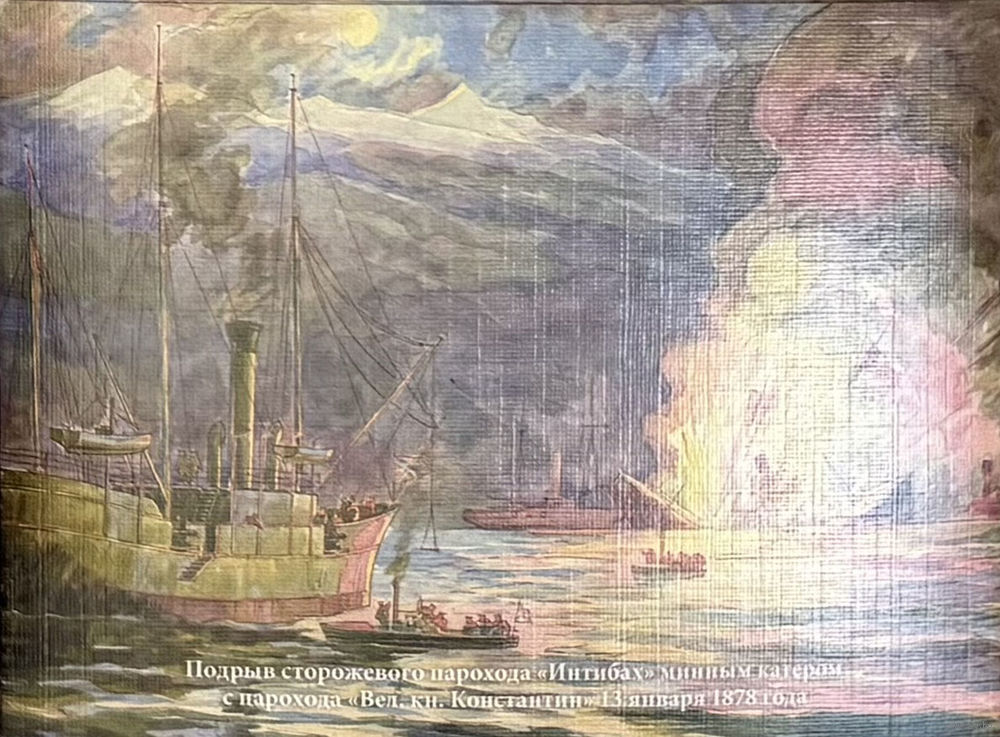 Открытка "Подрыв сторожевого парохода "Интибах" минным катером с парохода "Вел. Кн. Константин" 13 января 1878 года" 12