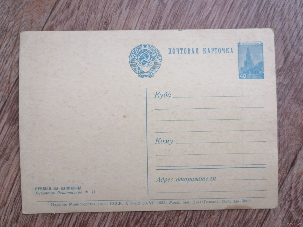 Открытка Прибыл на каникулы.Худ.Решетников Ф.П.1954г