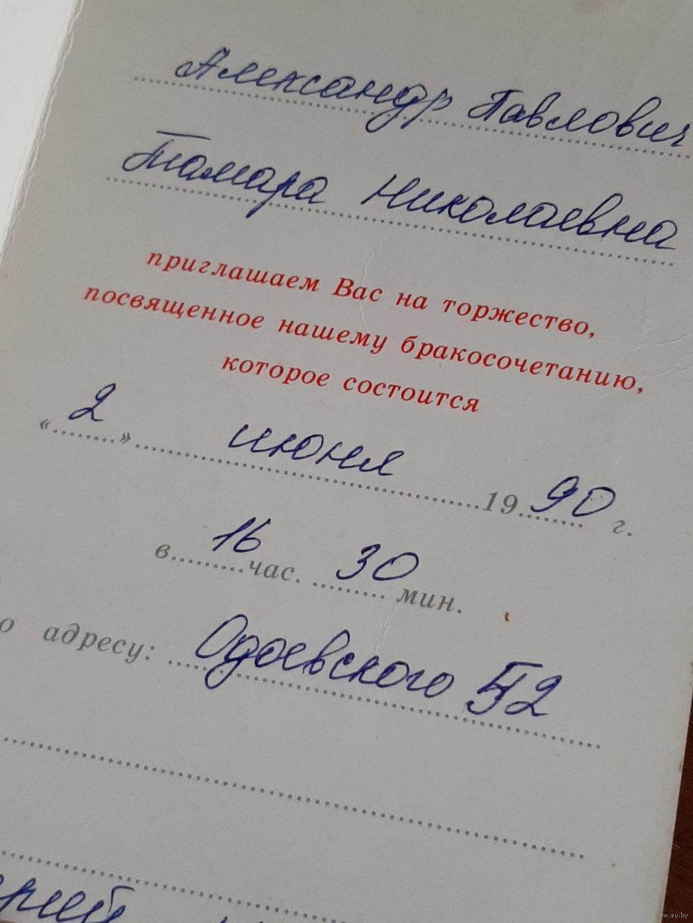 Открытка Приглашение Горелов 1989 г.